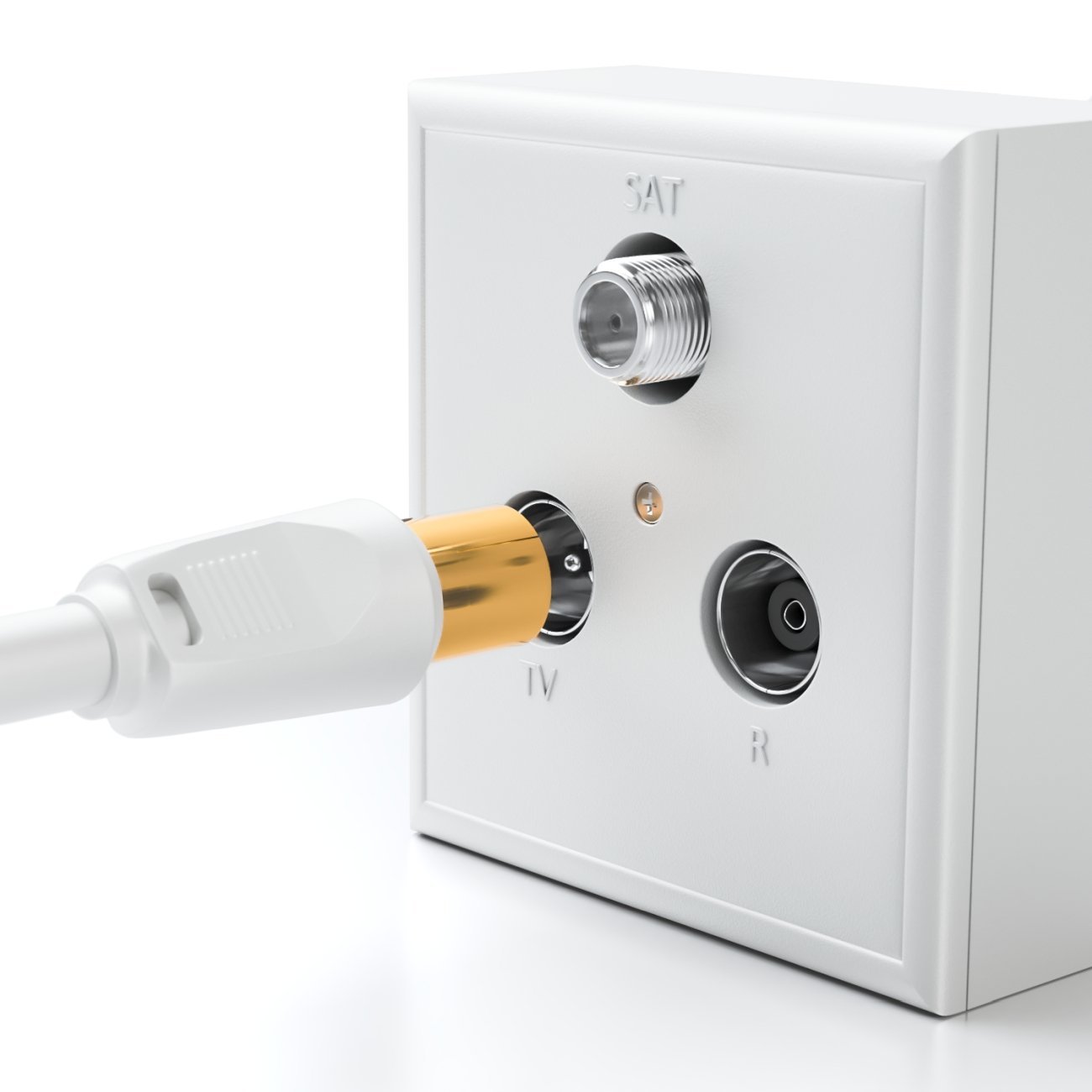 - Para todos los dispositivos con conexión de antena de TV coaxial // TV, receptor de TV, reproductor multimedia, radio, DVB-T, DVB-T2, DVB-C, FM, DAB, DAB+ etc.