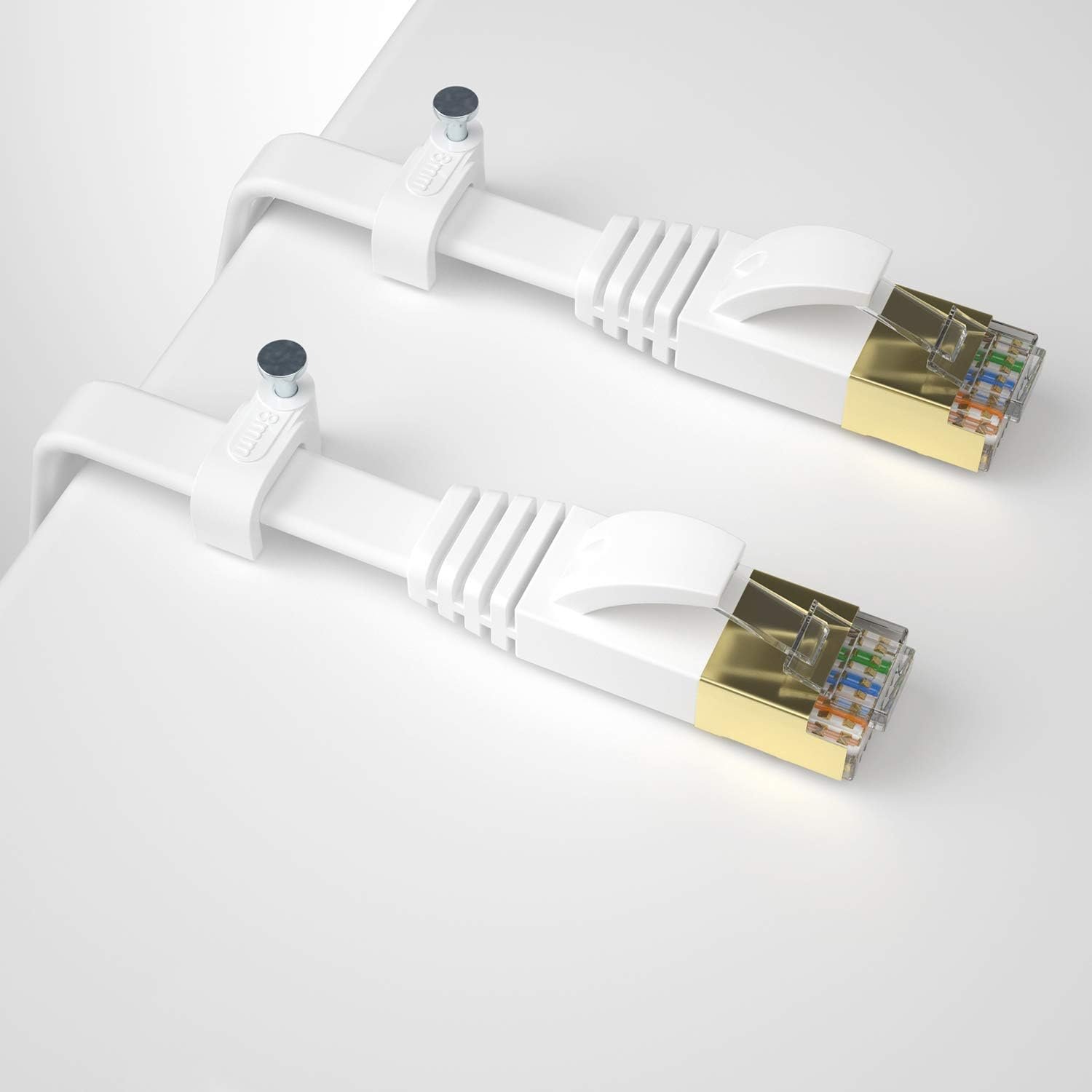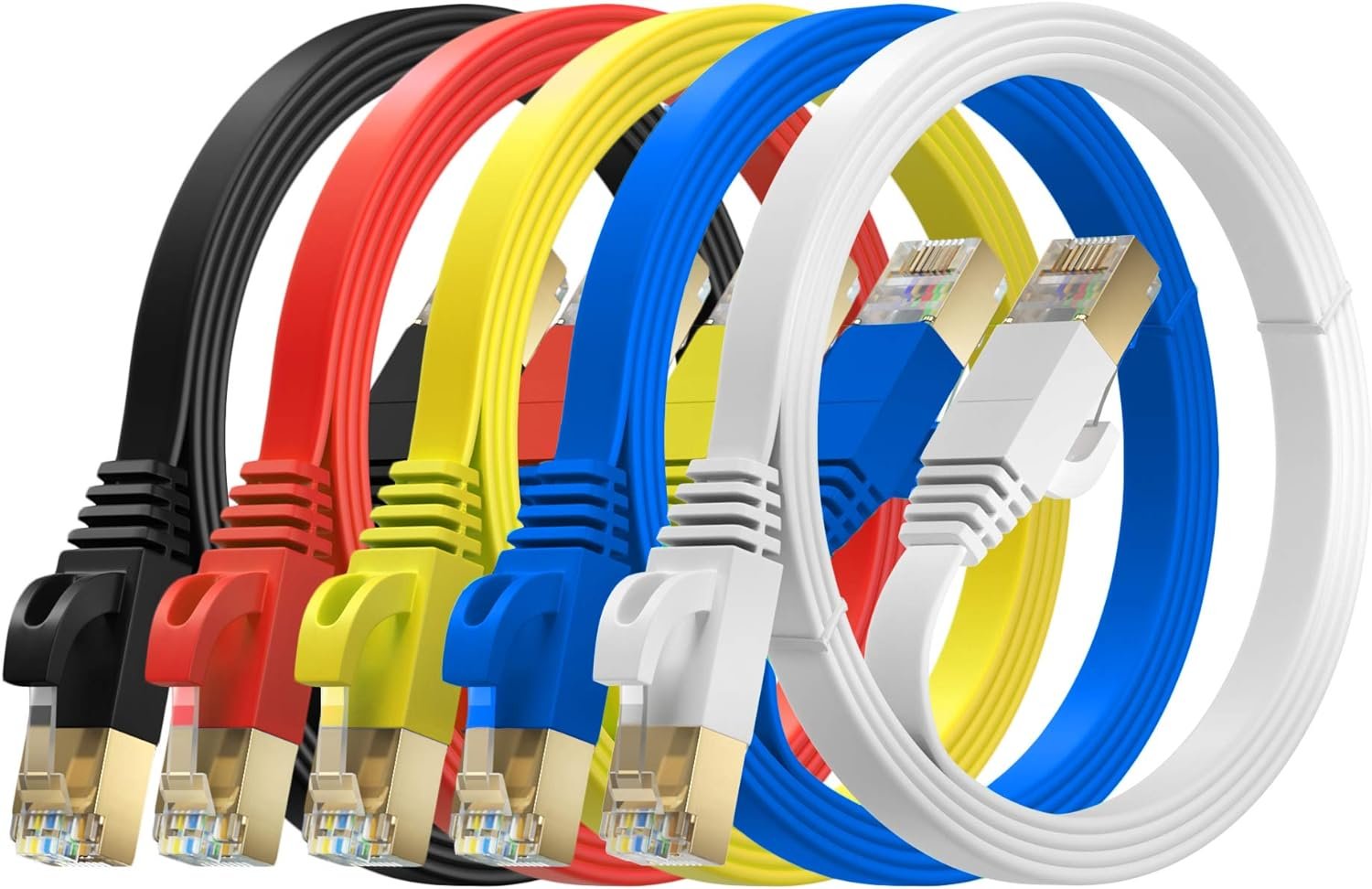 - DISEÑO ULTRA SLIM DE PRIME CLASE: Paquete de 5 x 2 m de largo SFTP (par trenzado laminado apantallado) 32AWG Cat7 con enchufes RJ45 chapados en oro. (negro/blanco/rojo/amarillo/azul) Incluye 25x clips de cable y 25x bridas para cables para una instalación eficiente. El diseño plano y delgado ayuda a evitar cables enredados y ahorra espacio, son súper flexibles cuando se colocan debajo de la alfombra o se doblan en el plano de su sección transversal delgada, como puertas, esquinas, cajones, etc.