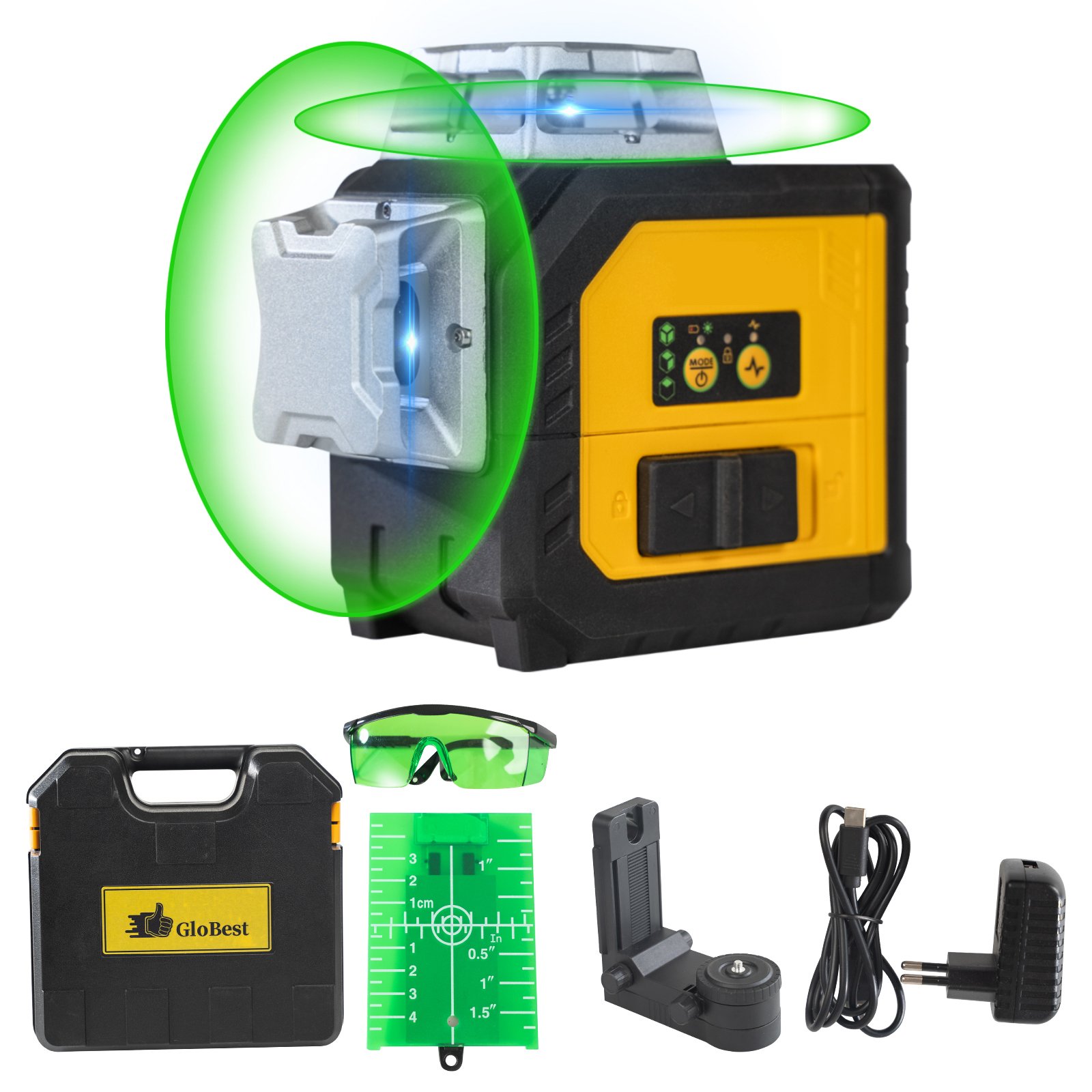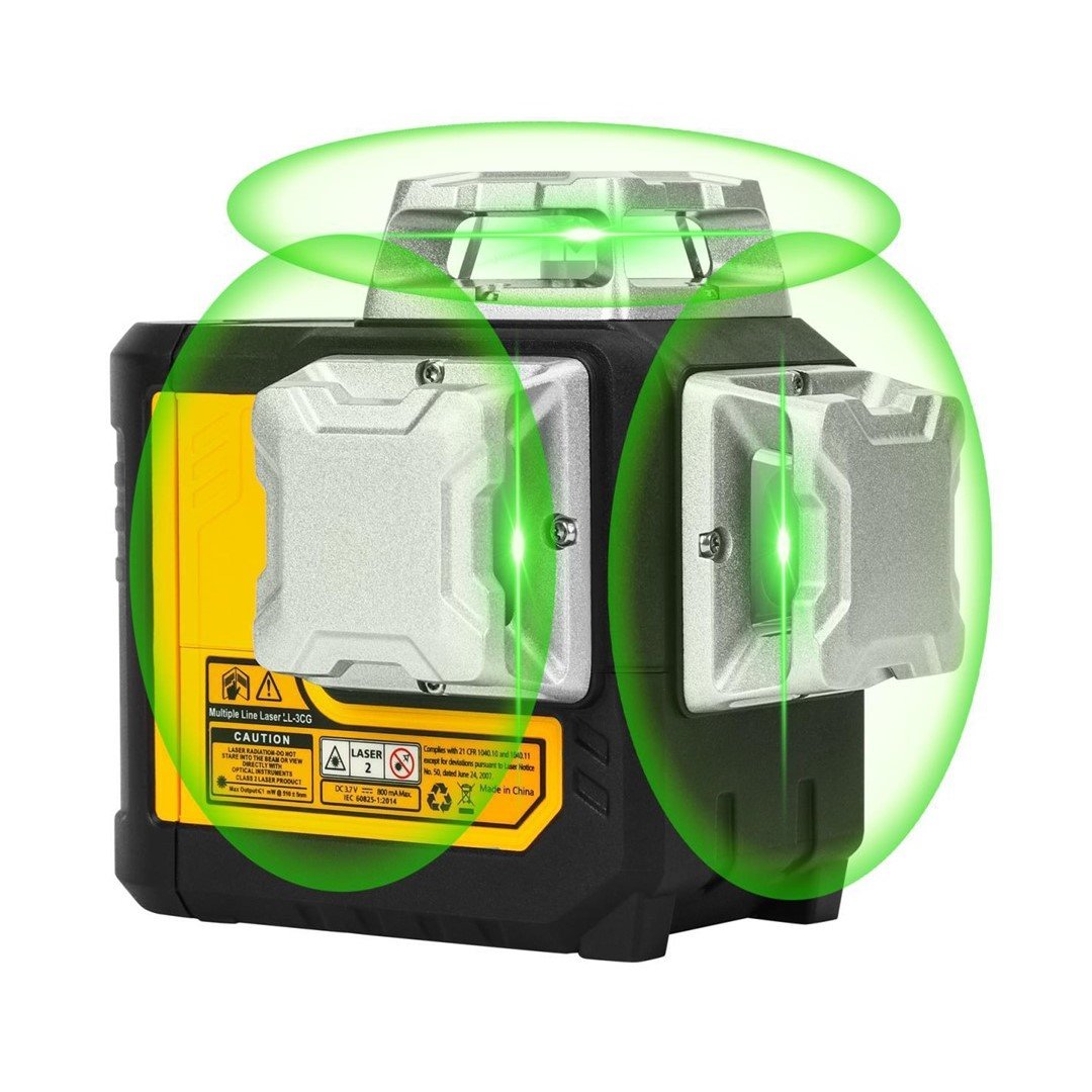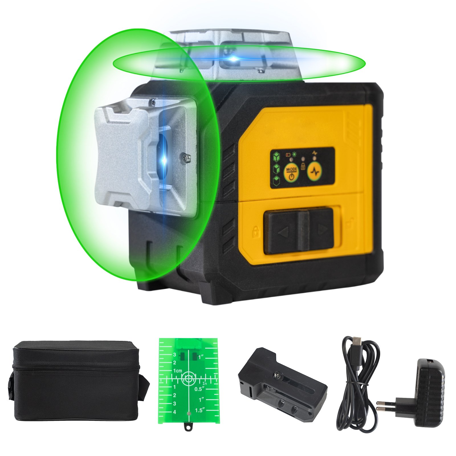Láser de línea verde 3D, nivel láser autonivelante recargable para construcción, carga USB, kit de nivelación automática de 3 planos con 12 líneas, herramienta niveladora láser de alineación de 360 grados, nivel láser: clase II, Autonomía 20 horas